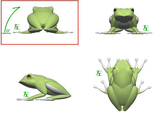 カエル3面図 二ひこうき 分351°(= - 9°)