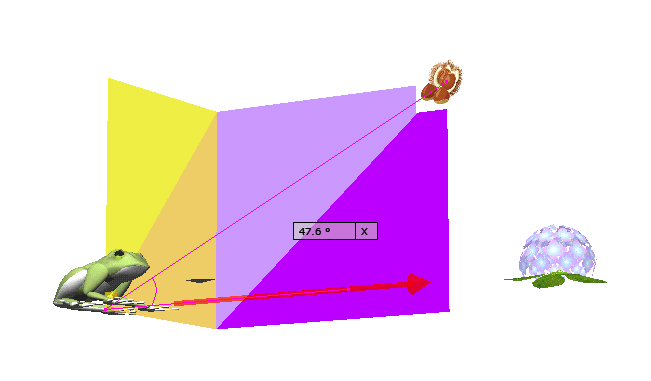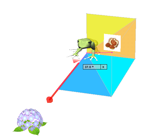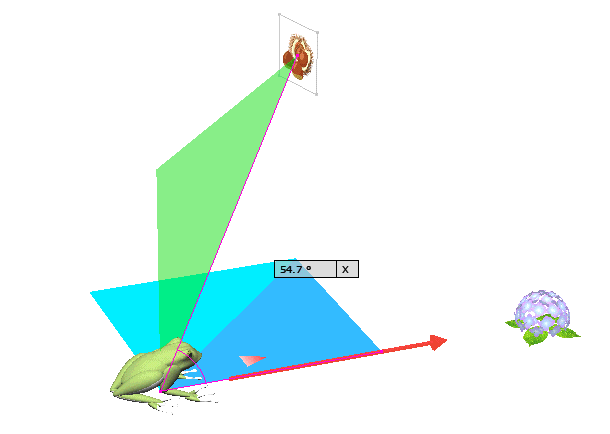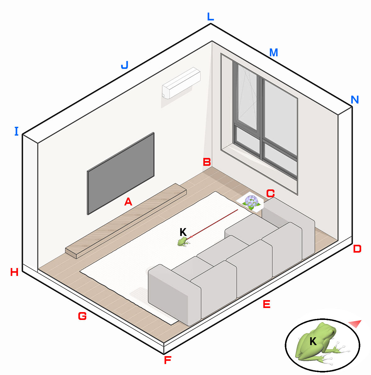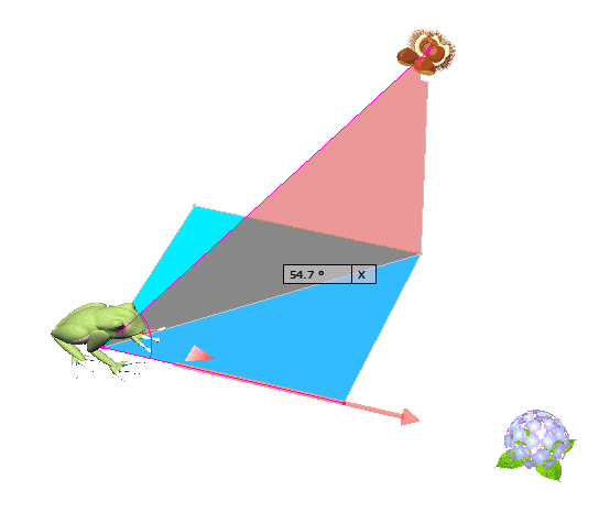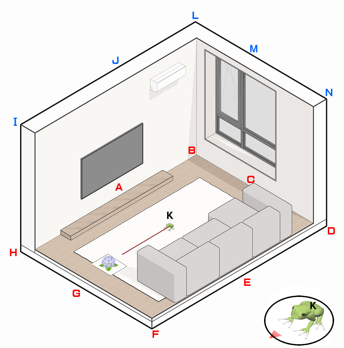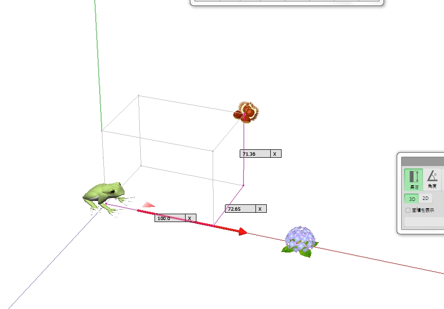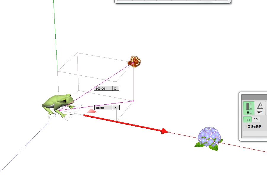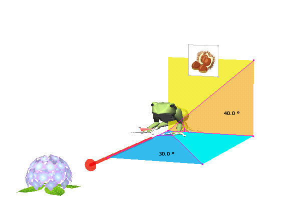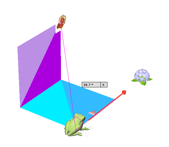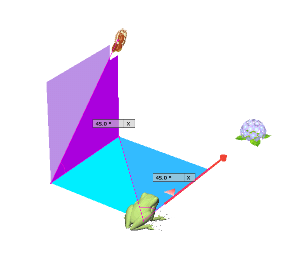 図 3つ → K が ( KAERU ) の げんてん K は フロア の ちゅうしん あじさい が ∠ 0 ど ほうこう へいめん は 赤 エリア りったいかく は ∠ 赤 K 青 みぎ の ふりむき は マイナス かいてん |
