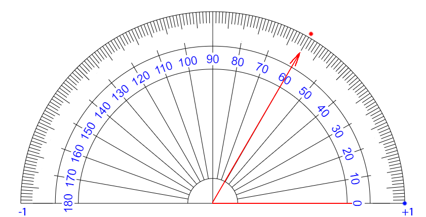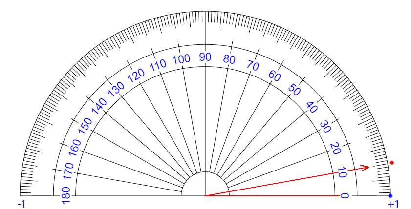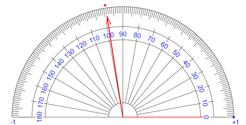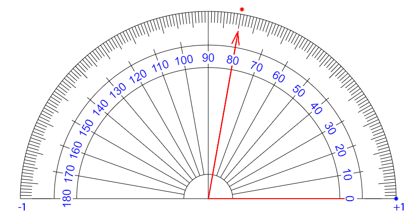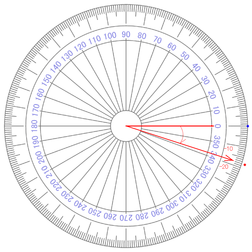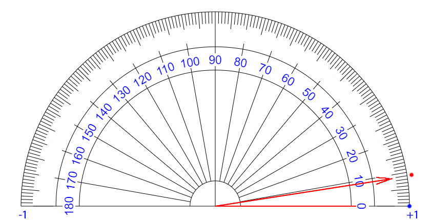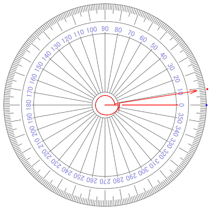 | ∠ 10 度 それるごとに + 0.111... 乗 ずつ カウント が ふえている イメージ |