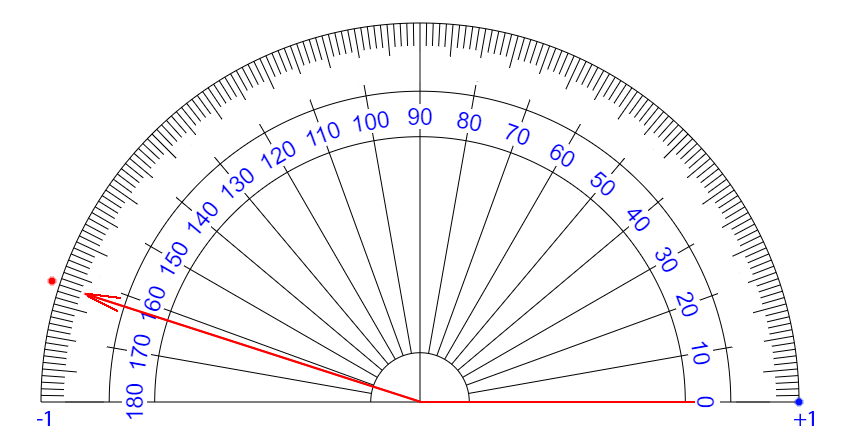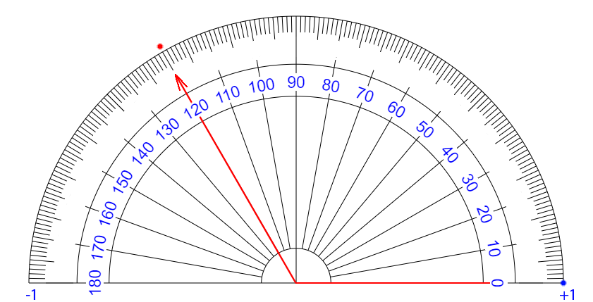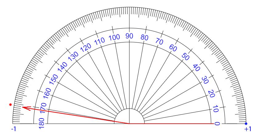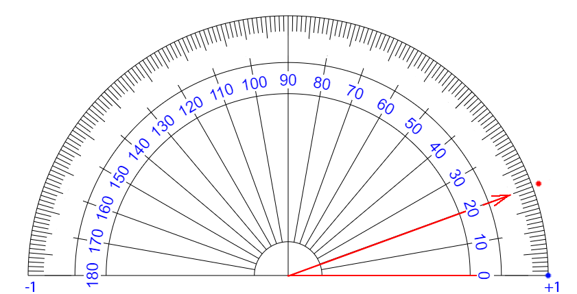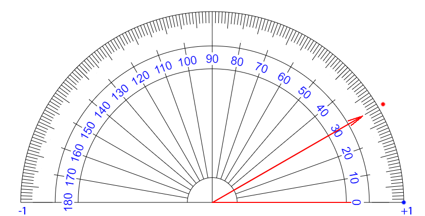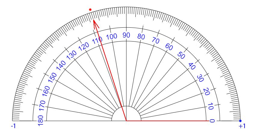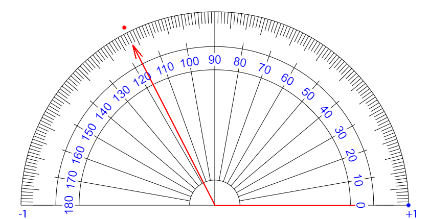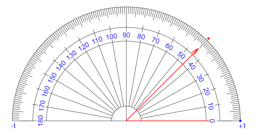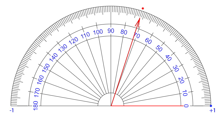 | ∠ 10 度 それるごとに + 0.111... 乗 ずつ カウント が ふえている イメージ |