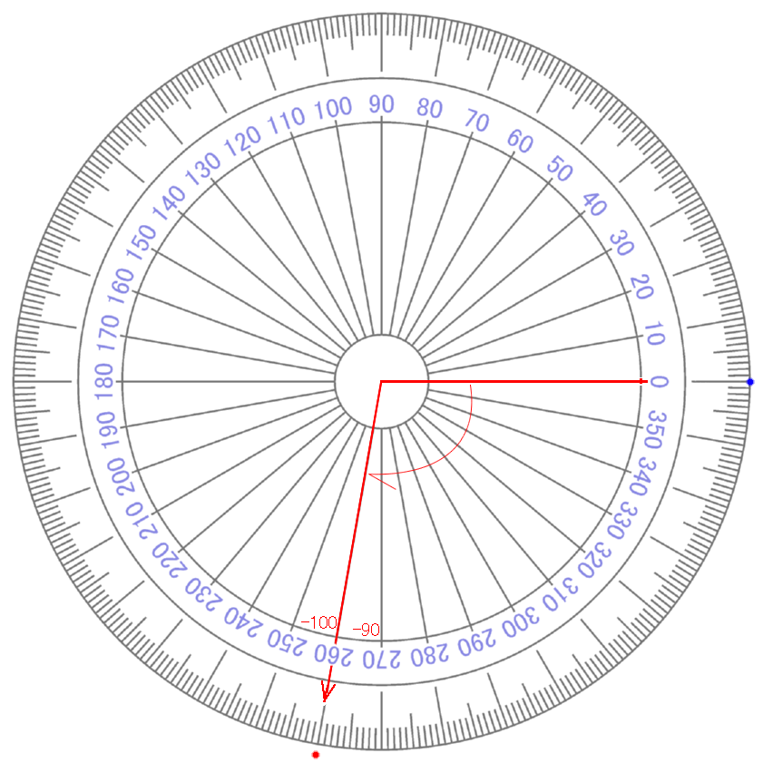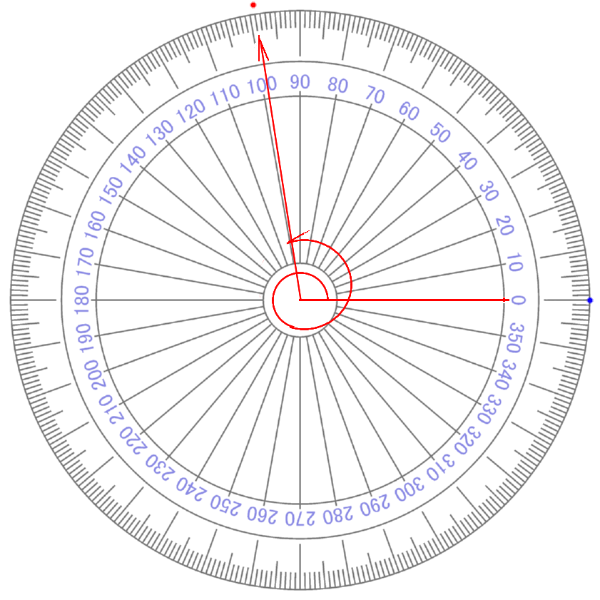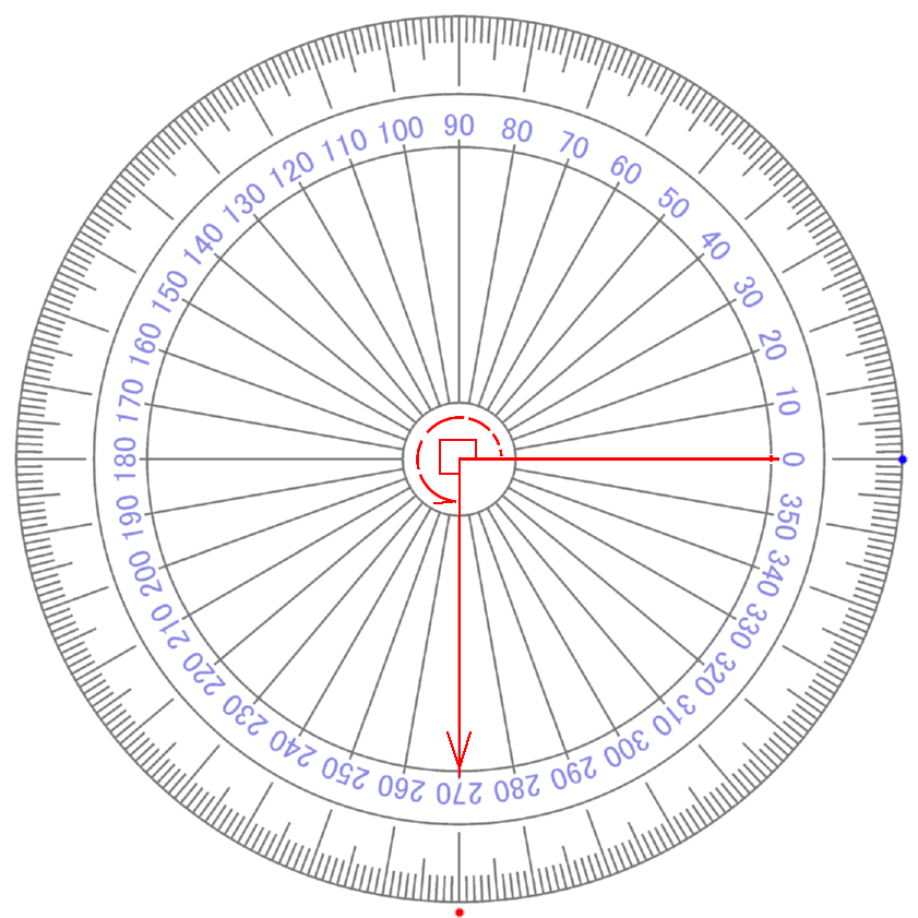 ∠ カクド ° を 『 ÷90 』 して 『 ⅰ 』 の みぎかた 上に もってくる |