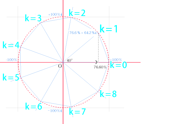 ┌ 0.5 じょう( 45 ど) → 70.710.. % ┌はんぶん の かず で あると どうじに … (0.7071..) × 2 = 1.4142.. (こさいん 45ど.) × 2 = (はくぎんひ) ┌ぎゃくすう でも ある … 1 ÷(0.7071..) = 1.4142.. 1 ÷(こさいん 45ど) = (はくぎんひ) 135 …225 …315 ども ミラーで かんけい あり |