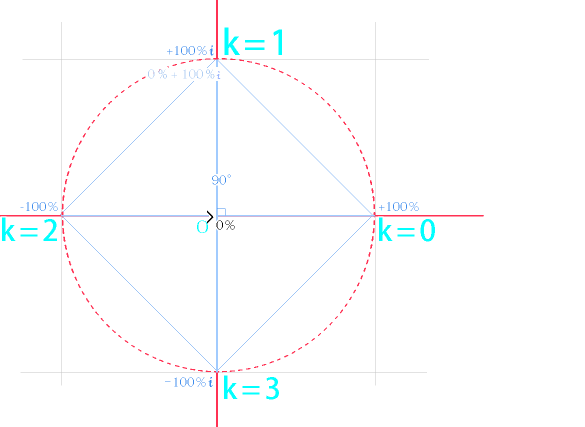 ┌ 0.5 じょう( 45 ど) → 70.710.. % ┌はんぶん の かず で あると どうじに … (0.7071..) × 2 = 1.4142.. (こさいん 45ど.) × 2 = (はくぎんひ) ┌ぎゃくすう でも ある … 1 ÷(0.7071..) = 1.4142.. 1 ÷(こさいん 45ど) = (はくぎんひ) 135 …225 …315 ども ミラーで かんけい あり |