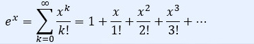 | = | 1 | + | x | + | x2 ÷ 2 | + | x3 ÷ 6 | + | x4 ÷ 24 | … | |||